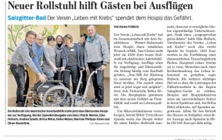 „Leben mit Krebs“ spendet 4500 Euro an drei Hospize Verein stellte dieses Jahr insgesamt 30 000 Euro zur Verfügung – Je 1500 Euro für die Ausbildung der Ehrenamtlichen in den Häusern Von Sabine Kempfer Goslar. Der Verein „Leben mit Krebs“ unterstützt Menschen, die mit ihrer Erkrankung und den Folgen leben müssen. Doch nicht jeder überlebt. [...]